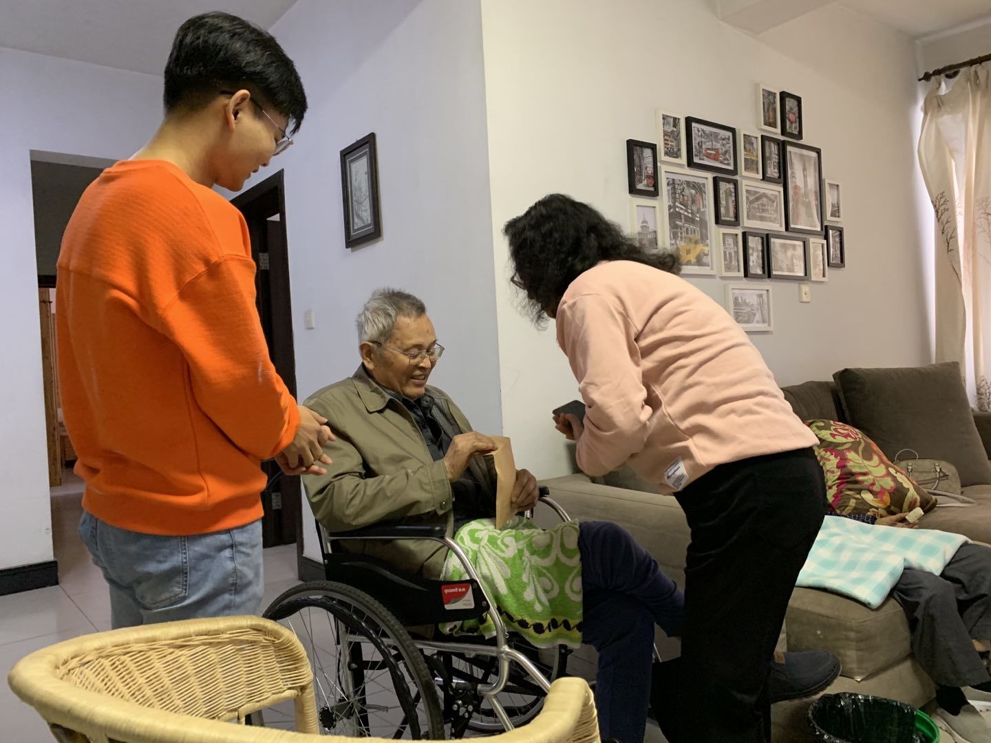 在副经理贺岩松老师、汽车系傅春耘老师的带领下,爱心队的志愿者同学们走访慰问了汽车系90岁以上的退休老教师们。贺经理代表学院向退休老师们送去节日的祝福,傅老师代表汽车工程系向退休老师发放慰问金,并表达关怀之情。最后,两位老师还向退休老师们详细介绍了合并后汽车系的发展,并殷切嘱托他们保持健康,有生活上的困难或者问题及时同学院联系,学院一定尽力解决,使退休老师们内心涌起一股股暖流。