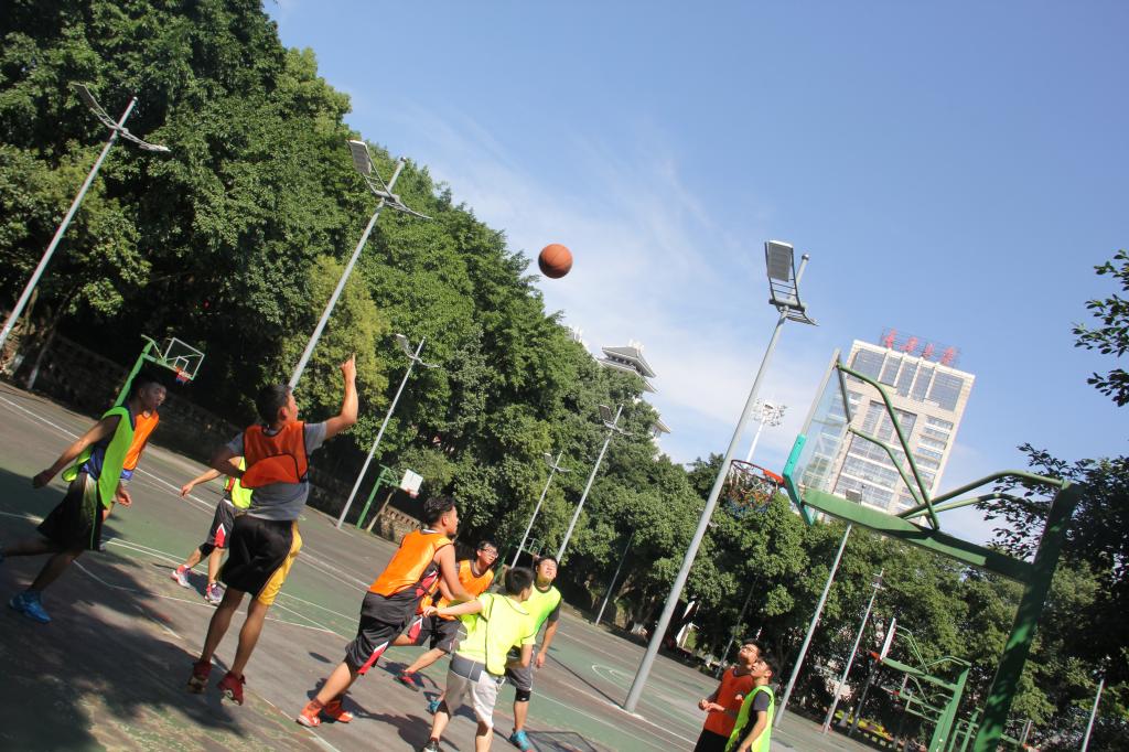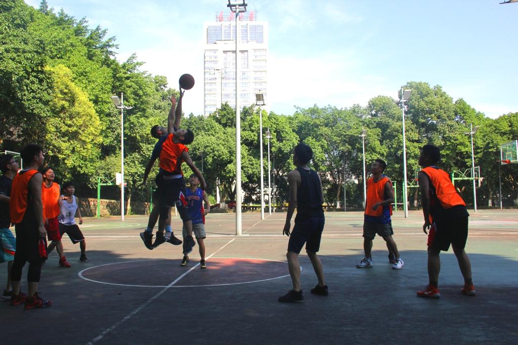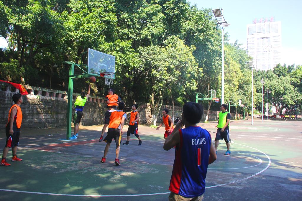 比赛一开始就进行得如火如荼,篮球运动健儿们心中都有个信仰:什么都抵挡不住我们对篮球的热情,不管严寒还是酷暑。今天重庆温度30摄氏度以上,烈日为整个活动添加了更多的热情。第一场,制造所VS七教制造所凭借罚球拿下第一分,上半场你来我往,比分定格在11-13。下半场一开局,七教凭借着连续3个精准的3分球,一度将分差拉开到9分,最终,七教凭借着下半场精准命中的6个3分球以及上半场2分的领先优势,总比分以29-43结束。