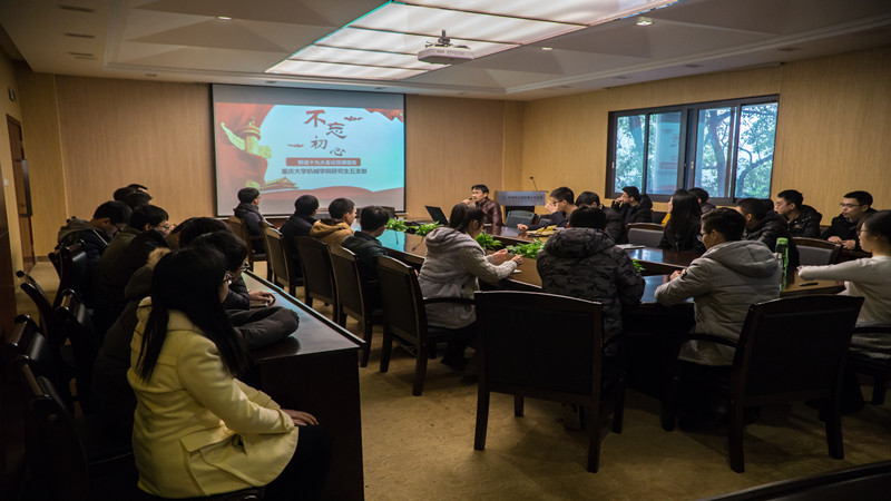 为深入学习贯彻习近平总书记十九大重要讲话精神,切实做好员工党员的教育工作,2017年12月28日下午16:00,机械研究生五支部举行了以“解读十九大会议”为主题的党课报告。本次党课由机械学院研究生五支部书记陈锐老师主持,全体员工党员参加了学习。