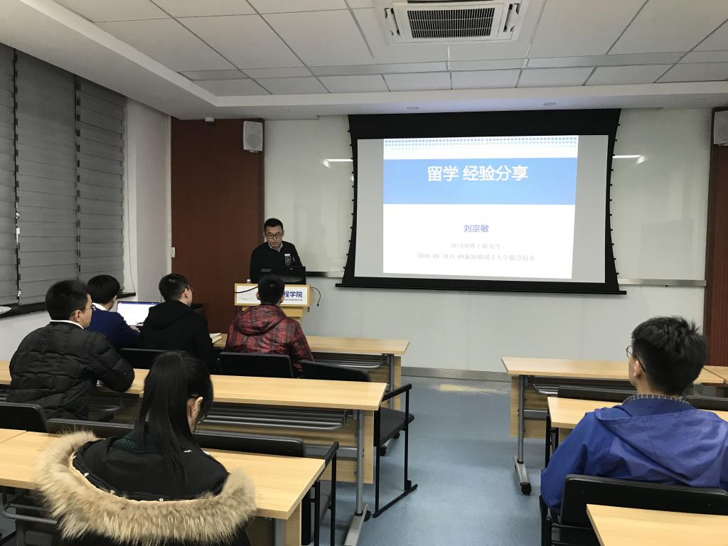 刘宗敏博士有两年在新加坡国立大学联合培养的经历。他首先对毕业后选择工作还是深造提出了建议,然后针对想要出国的同学讲解了申请资助的途径以及要做哪些准备,最后讲述了在国外生活的不同之处。