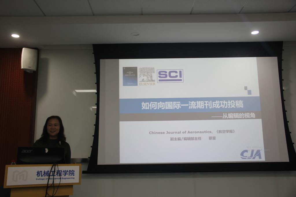 2018年12月5日上午9点,题为“如何向国际一流期刊成功投稿”的学术报告在永利集团机械工程学院楼7342教室举行。该报告的主报告人蔡斐是《航空学报》与《Chinese Journal of Aeronautics》的副主编兼编辑部主任,在科技论文撰写与投稿、提升期刊学术影响力方面有较深入的研究。《航空学报》的另一名编辑李世秋对投稿所需注意事项后续做了介绍。本次学术报告由机械学院肖贵坚老师主持。