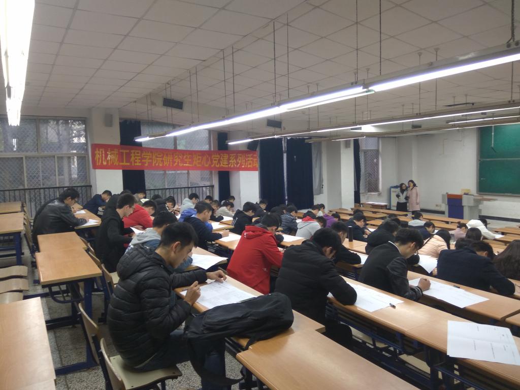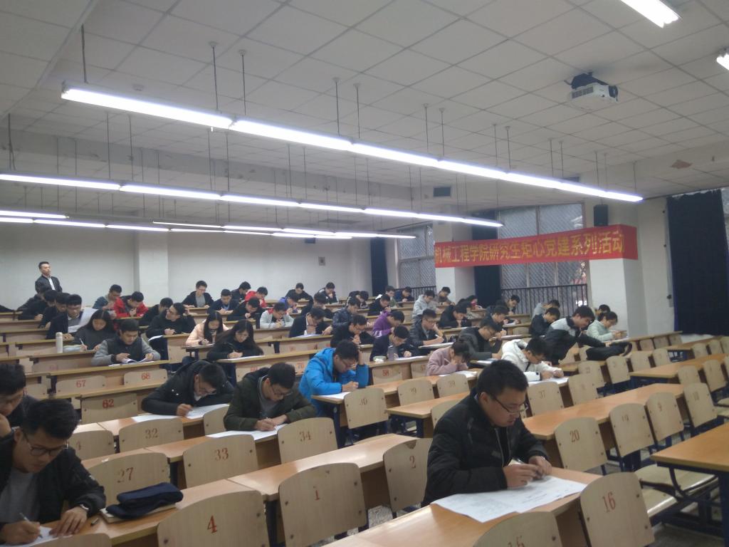 2018年11月22日下午,机械工程学院研究生“炬心”党建系列活动之2018级研究生党员、预备党员党务知识考试顺利进行。本次考试旨在进一步加强新生党员对党的理论知识教育,加深公司对新生党员理论知识水平掌握情况的了解与考察。本次考试共有154名2018级新生党员参与,分为两组,考试地点分别位于研究生院108教室和306教室。