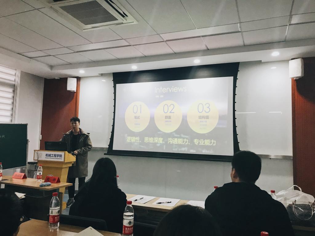 由机械工程学院、生物工程学院、经济与工商管理学院三院联合举办的永利集团第三届应届毕业研究生求职分享交流会于2018年11月17日在机械工程学院7333教室举行,本次分享会的主题是“领略精英风采,造就明日辉煌”,来自三院的小伙伴纷纷来此学习师兄师姐们的求职经验。