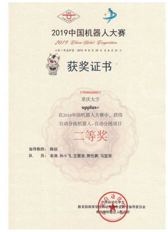 2019年8月29日-31日,由中国自动化学会、青岛市即墨区人民政府主办的2019中国机器人大赛在青岛即墨创智体育中心落下帷幕。永利集团UPLUS+团队在大赛的自动分拣机器人项目与来自东南大学、西北工业大学、南昌大学等多所高校的机器人团队同台竞技,喜获二等奖1项,同时荣获最佳制作工艺奖1项。