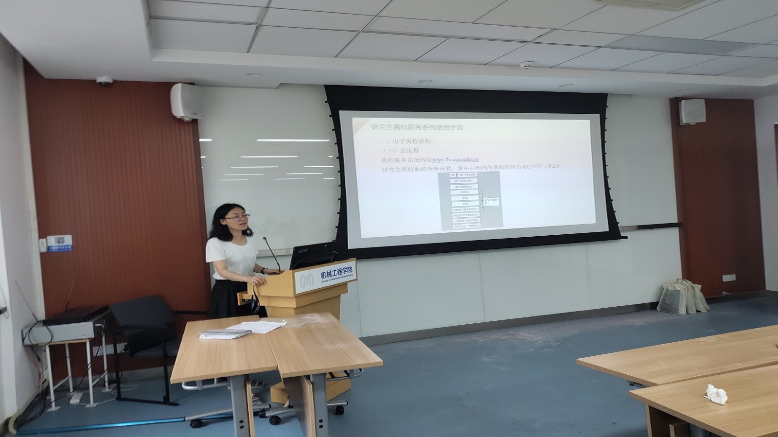 崔学芳老师首先对近期2019届毕业研究生工作进行小结,对全体毕业生同学的配合表示了感谢,并对下一阶段的作出安排和指导,强调要进一步明确“毕业季”相关工作和毕业离校前各重要事项的时间节点,同时提高安全意识,为顺利毕业离校做准备。