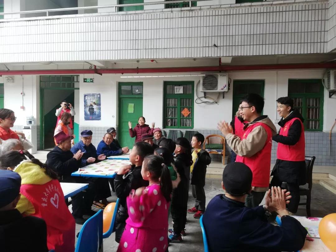 在老人们入座后,活动正式开始。最开始登场的是一群可爱的小朋友,只见他们手拉着手蹦蹦跳跳地站在中央,开心地唱着歌,跳着舞。老人和志愿者们都不禁为他们喝彩鼓掌,全场沉浸在一片歌声笑语之中。