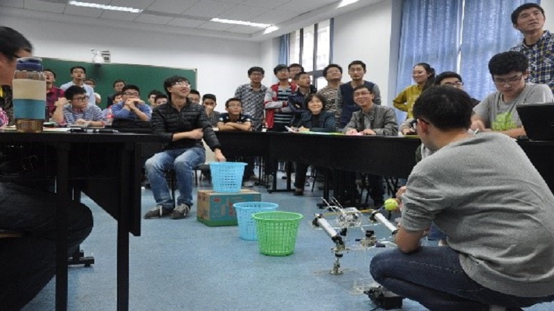 《流体传动与控制》课程每年选择一个前沿特色主题作为实践对象,引导员工利用图书馆资源,检索最近几年关于流体传动与控制的科学论文,通过阅读、讨论最新发表的相关论文,研究流体传动与控制在特定对象中的应用以及技术难点,保证员工与最前沿的科学技术同步,并设计多个项目方案进行权衡比较,选择最优方案。员工采取自由分组,项目分“总体方案、设计计算、样机制作”三个阶段进行。同学们通过课下资料的查找和讨论,课上与老师研究探讨,独立完成设计、加工、制造及后续的安装调试等所有工作。项目最后将举行课堂答辩和样机竞赛,最终答辩和竞赛成绩将作为该课程的总成绩的重要组成部分。