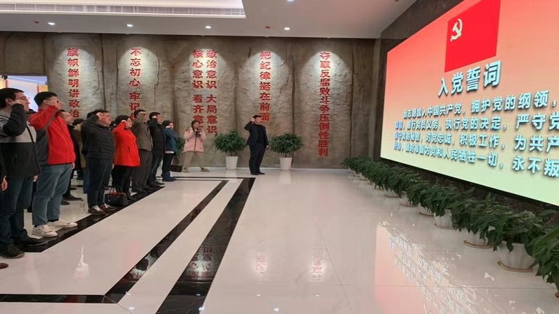 首先,全体党员在工作人员的带领下,在党旗下重温了入党誓词。