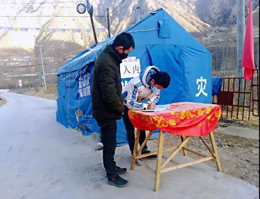2017级机械设计制造及其自动化4班的他才塔多杰同学带领本村返乡老员工,参加本村疫情防控工作,帮助党员干部进行来往人员登记、外来人员劝返等工作。