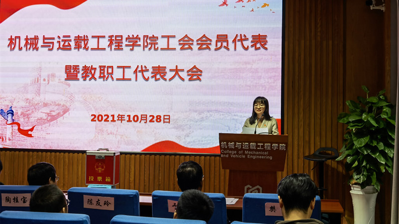 2021年10月28日下午,yl8cc永利官网在七教335会议室召开工会会员代表暨教职工代表大会,会议由公司党委副书记樊玮主持,学院9个工会小组的50余名代表参加了会议。