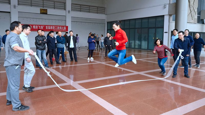 为有效发挥分工会桥梁与服务职能,丰富教职工精神文化生活,促进教职工身心健康,2021年11月11日下午,yl8cc永利官网分工会在A区风雨操场举办“凝心聚力 绳彩飞扬”首届教职工跳绳比赛。