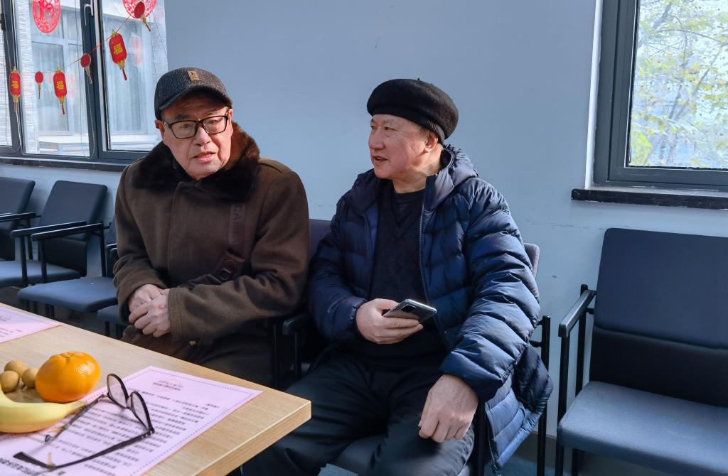 老同志们欢聚一堂,时而握手寒暄,时而交流赞赏,时而拍照留念,大家忆往昔、论现在、谈未来。他们对学院 2021 年各项工作取得的成绩给予充分肯定,对学院未来的发展提出了宝贵的意见和建议。老同志们还纷纷表示,感谢学院对离退休老同志们的关心,他们会一直关注和支持学院的发展。