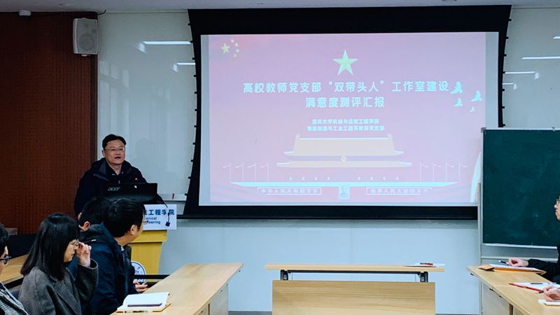 会上,智能制造与工业工程系党支部书记杨育首先作了首批高校“双带头人”教师党支部书记工作室验收工作的汇报。他对照《第二批新时代高公司党建“双创”工作重点任务指南》、教思政厅函〔2018〕19号文件所列建设任务、《高校“双带头人”教师党支部书记工作室建设标准》和申报时提出的目标任务,从强化党支部政治功能、抓好党建主责主业、提升思想政治工作质量、促进学校事业发展、加强党支部班子建设等方面汇报了创建“双带头人”支部书记工作室期间所开展的工作,分享了建设措施、机制创新、实践创新、方法创新等方面的经验,展示了支部建设的各项成果。学校组织部根据教育部要求对“双带头人”支部书记工作室建设工作满意度进行了测评,在场的各位领导及支部书记、党员代表均进行了测评。