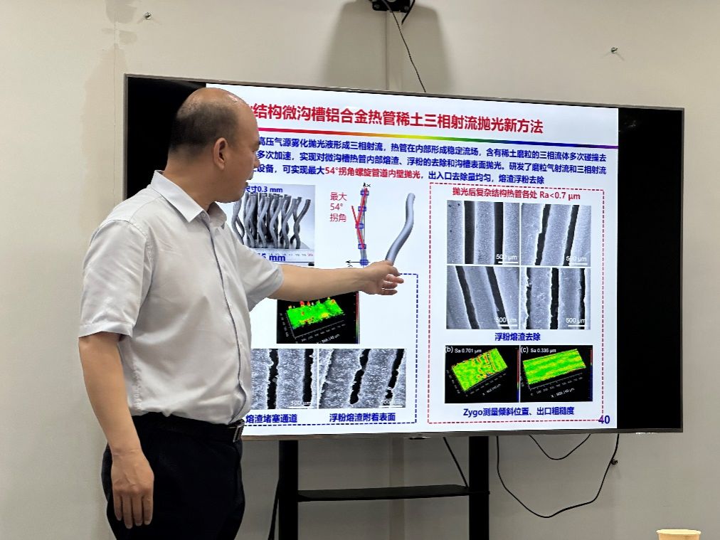 2023年6月19日上午9:00,大连理工大学张振宇教授应yl8cc永利官网副经理曹华军教授邀请来公司交流,并在7340会议室作了题为“新型抛光液及高效低损伤化学机械抛光工艺与装备”的学术报告。报告由陶桂宝副教授主持,yl8cc永利官网师生参加了此次学术交流活动。报告正式开始前,陶桂宝副教授对张振宇教授的到来表示热烈欢迎和感谢,并向与会师生介绍了张振宇教授及其团队所取得的主要成果。