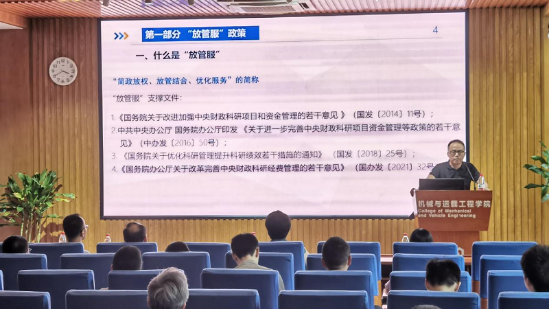 接着,孙志华受邀作了科研财务管理培训。围绕“放管服”政策,孙志华对学校财务制度进行了详细解读,并结合工作实际和案例进行了精彩讲解。